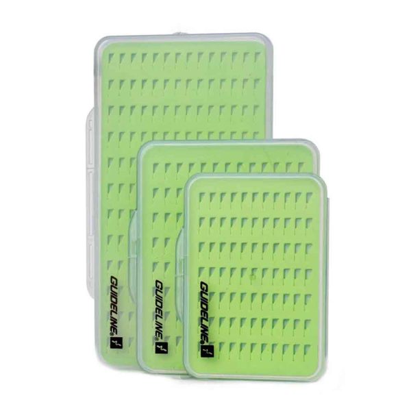 Slim Nymph is perfect for carrying your nymphs, these take up very little space in your vest and are light. All three boxes come with green slitfoam and is easy to operate.